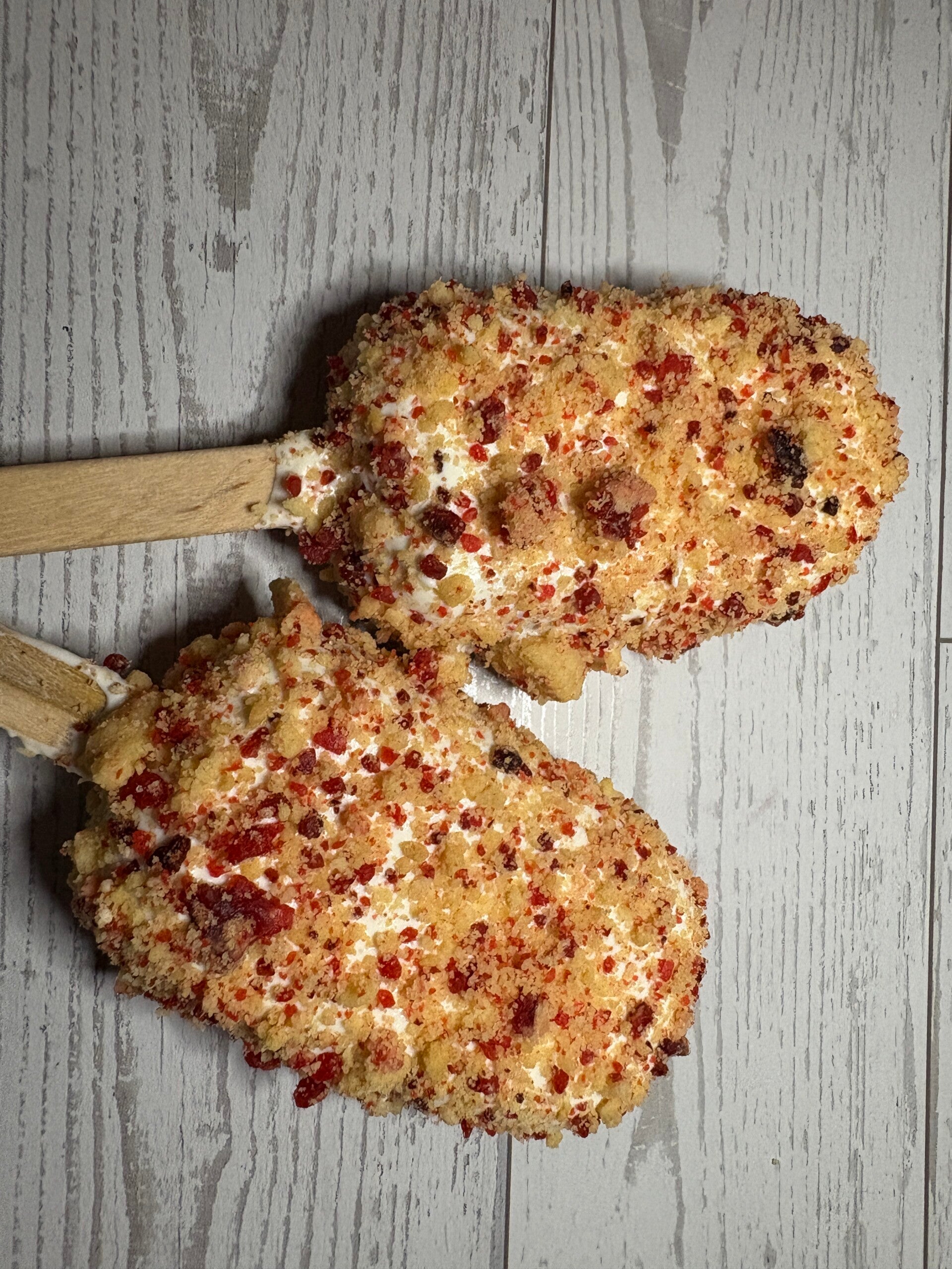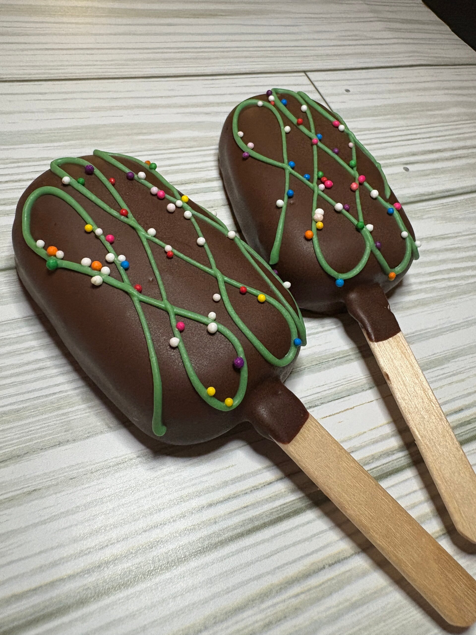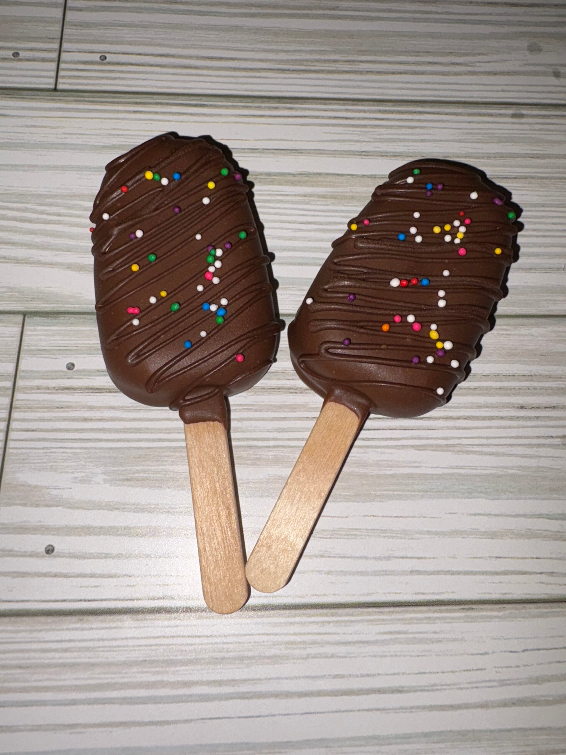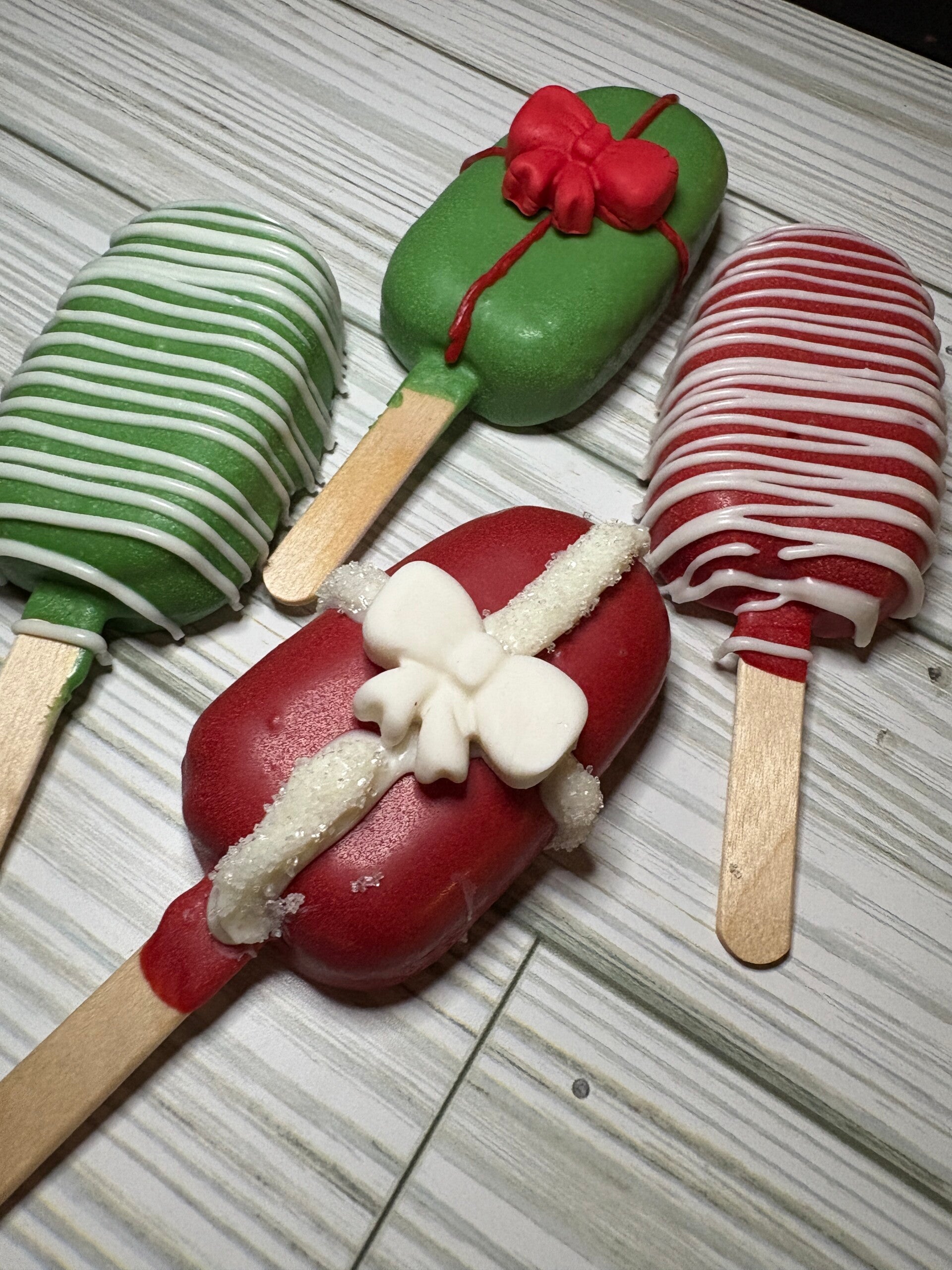 Assorited cake flavors cover in white or milk chocolate. Catered to any theme.